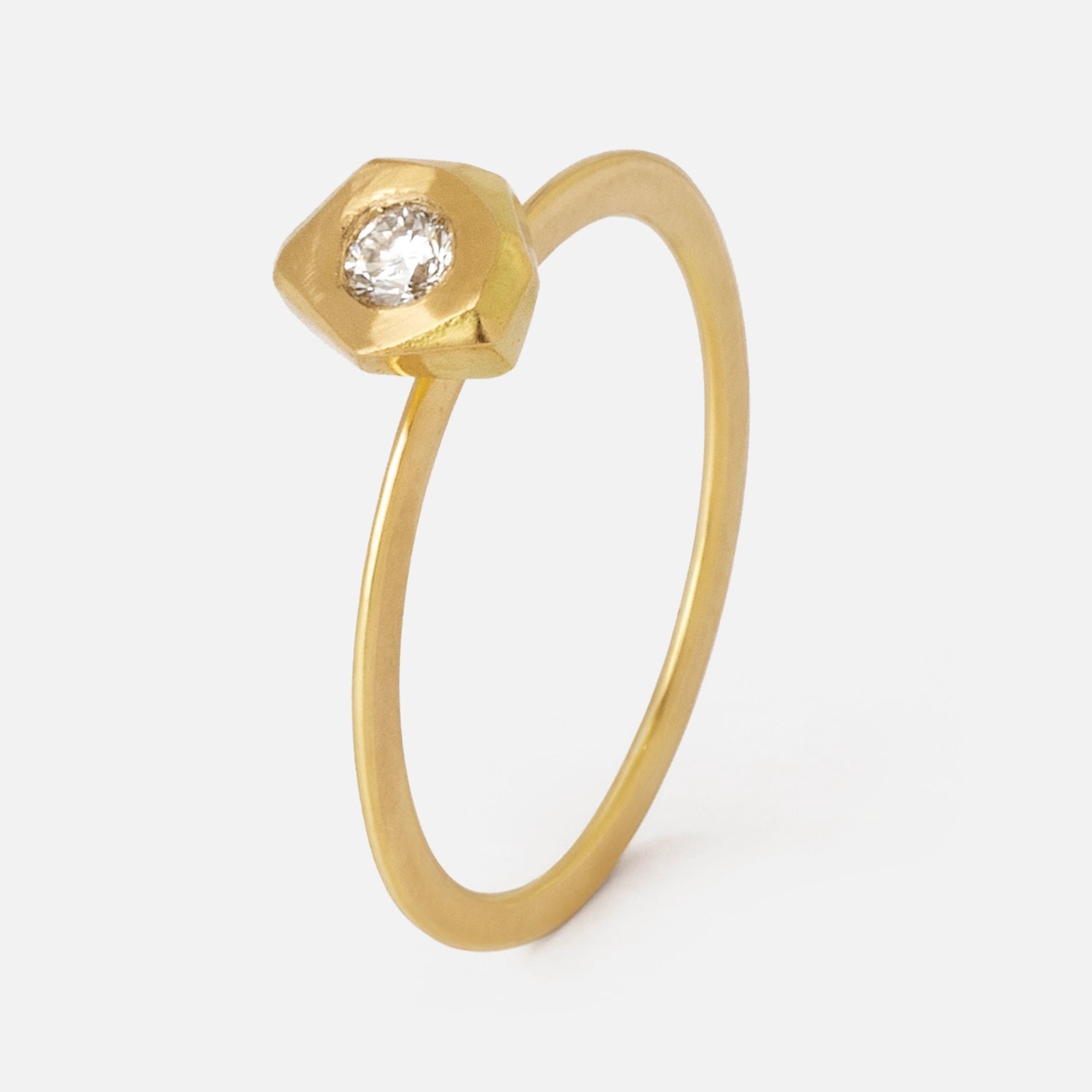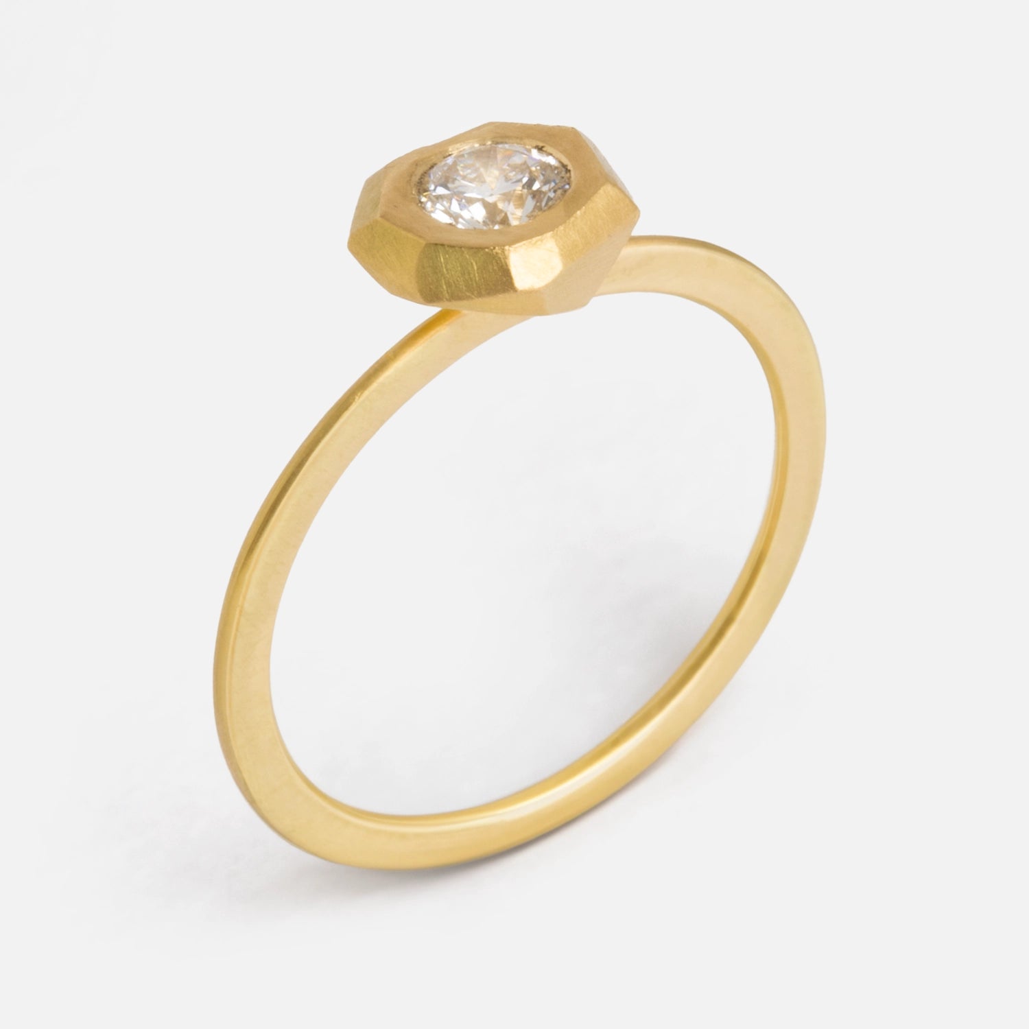 Dieser klassische Solitaire Verlobungsring aus Gold erstrahlt in neuem Glanz: Ein kunstvoll verarbeitetes Goldnugget aus 18 Karat Fairmined Gold trägt einen funkelnden synthetischen Diamanten, der in einer präzisen Aussparung eingebettet wurde. Dieses handgefertigte Meisterwerk aus Frankreich vereint Tradition und Innovation zu einem Symbol zeitloser Eleganz und nachhaltiger Schönheit – der perfekte nachhaltige Verlobungsring für unvergessliche Momente oder auch einfach nur ein edles Schmuckstück für Damen.
